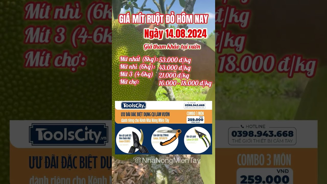 Giá mít ruột đỏ hôm nay ngày 14.08.2024: gia đi ngang #giá_cả_thị_trường #mitruotdo #nhanongmientay #mitruotdoindo